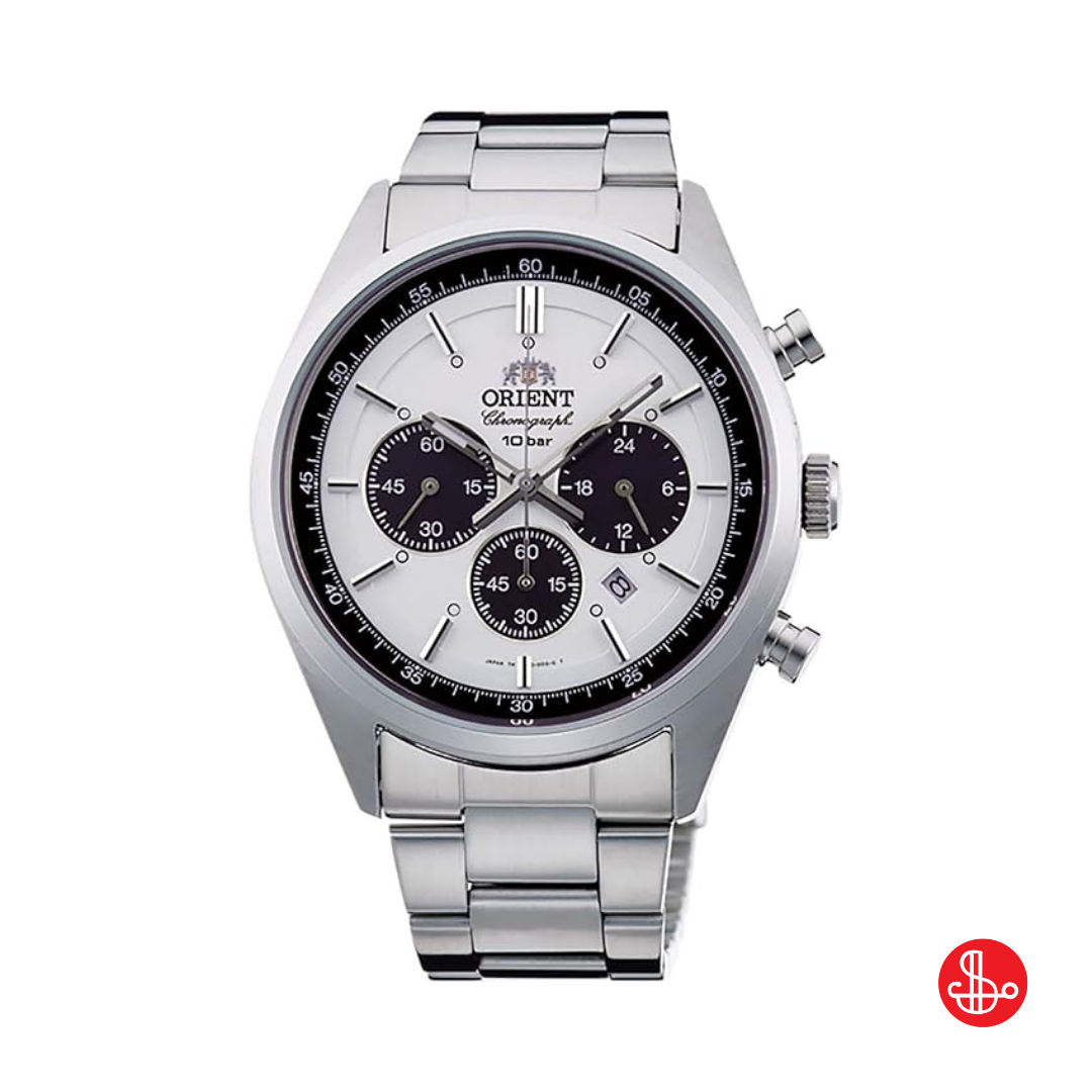 The Orient Neo70s Chronograph WV0041TX combines retro aesthetics with modern functionality. Featuring a striking black dial with contrasting white sub-dials, this timepiece offers stopwatch capabilities and a tachymeter scale for added utility. Its stainless steel case and bracelet ensure durability and style, making it perfect for daily wear.