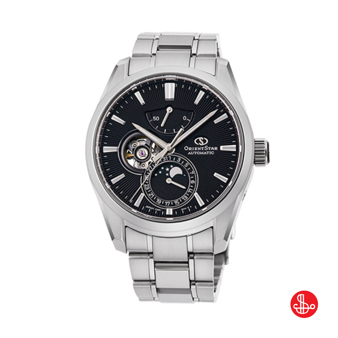 The Orient Star GMT RE-AU0001B is a versatile travel companion. Its black dial features a 24-hour GMT hand, a power reserve indicator, and a date display. Powered by a robust automatic movement, this watch is encased in stainless steel and completed with a leather strap for both functionality and style.