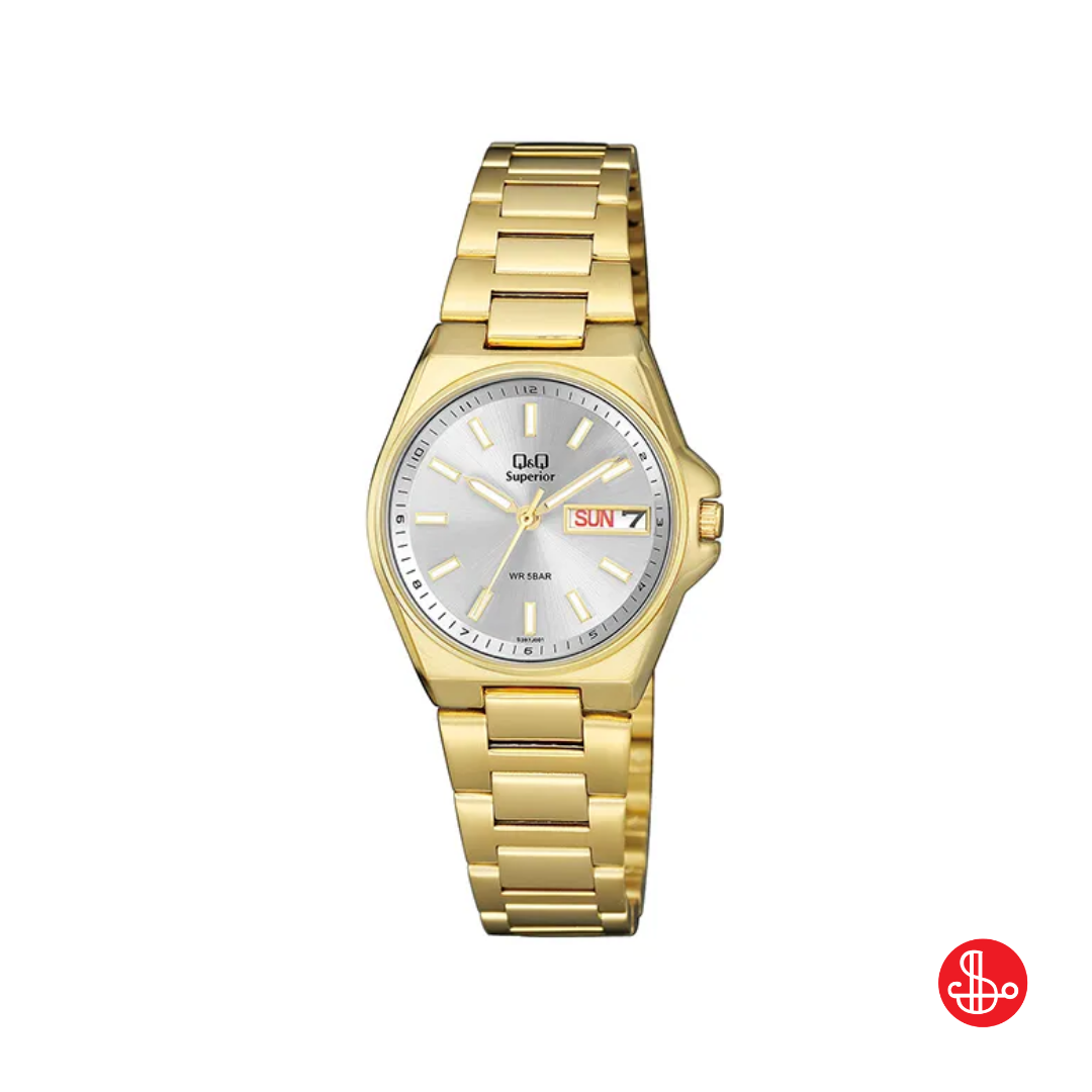 The Q&Q S397J001Y showcases a sophisticated and modern design. Its sleek stainless steel construction, paired with a polished analog dial, makes it a timeless accessory for any wardrobe.
